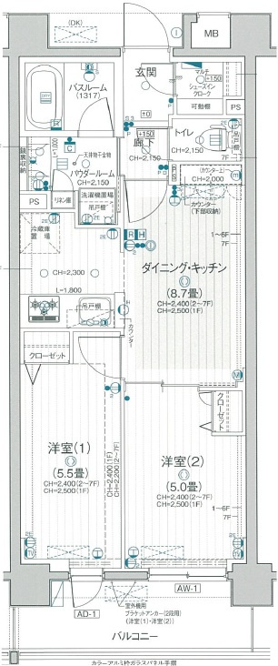 DK 8.7帖 / 洋室 5.0帖 / 洋室 5.5帖 / |