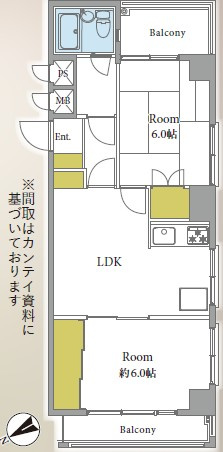 LDK / 洋室 6.0帖 / 和室 6.0帖 / |
