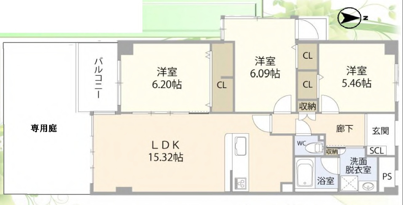LDK 15.3帖 / 洋室 6.2帖 / 洋室 6.0帖 / 洋室 5.4帖 / |