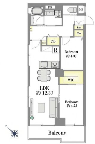 LDK 12.3帖 / 洋室 4.7帖 / 洋室 4.3帖 / |