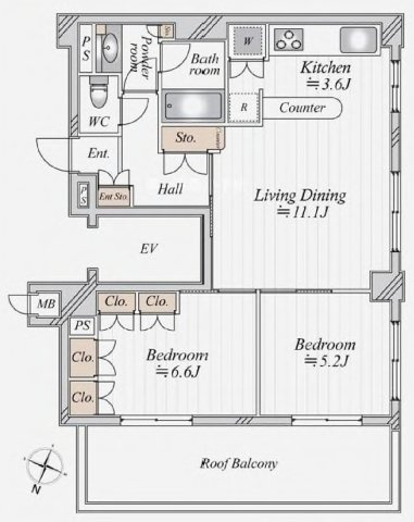 LD 11.1帖 / K 3.6帖 / 洋室 6.6帖 / 洋室 5.2帖 / |