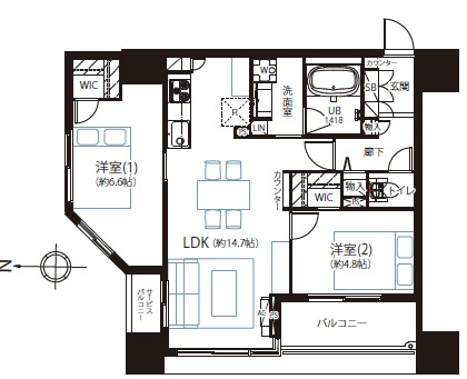 LDK 14.7帖 / 洋室 4.8帖 / 洋室 6.6帖 / |