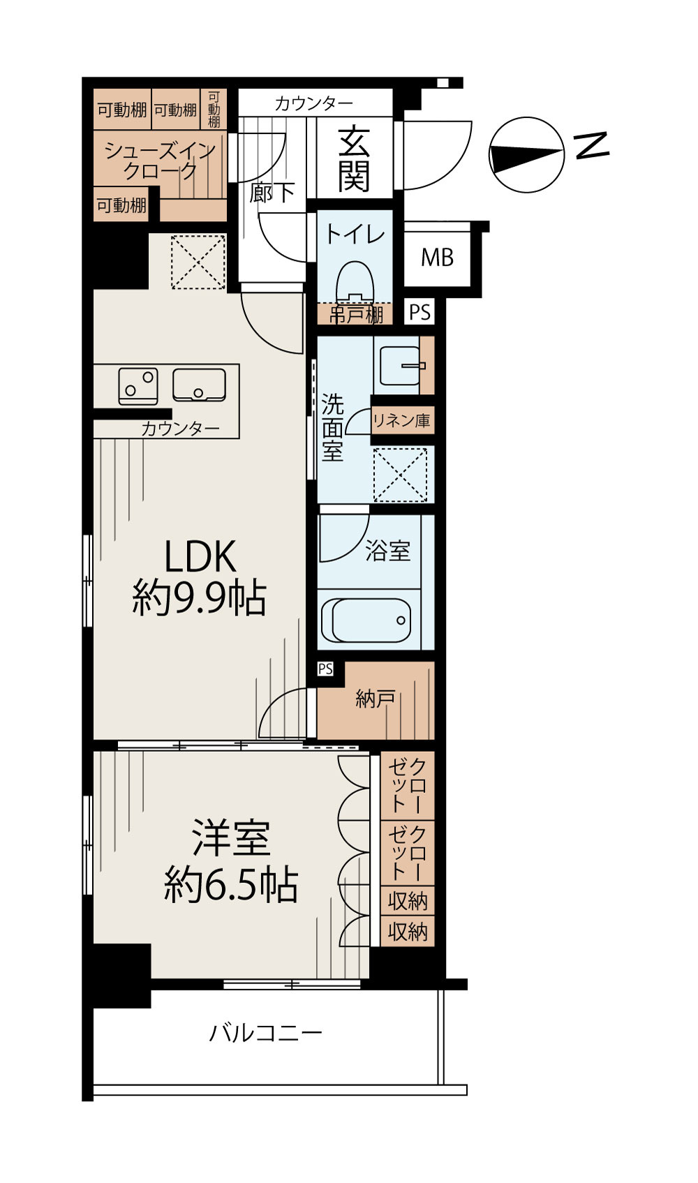 LDK 9.9帖 / 洋室 6.5帖 / |