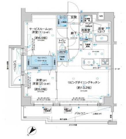 LDK 13.2帖 / 洋室 5.0帖 / S(納戸) 6.5帖 / |